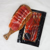C’est un jambon complètement naturel qui exclut le salpêtre et colorant. Le salage est réalisé au sel sec et le séchage à l’air libre.