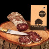 Ces viandes maigres, lui donnent sa couleur très sombre. Sa période de séchage dure plusieurs mois, ce qui lui permet une maturation optimale.